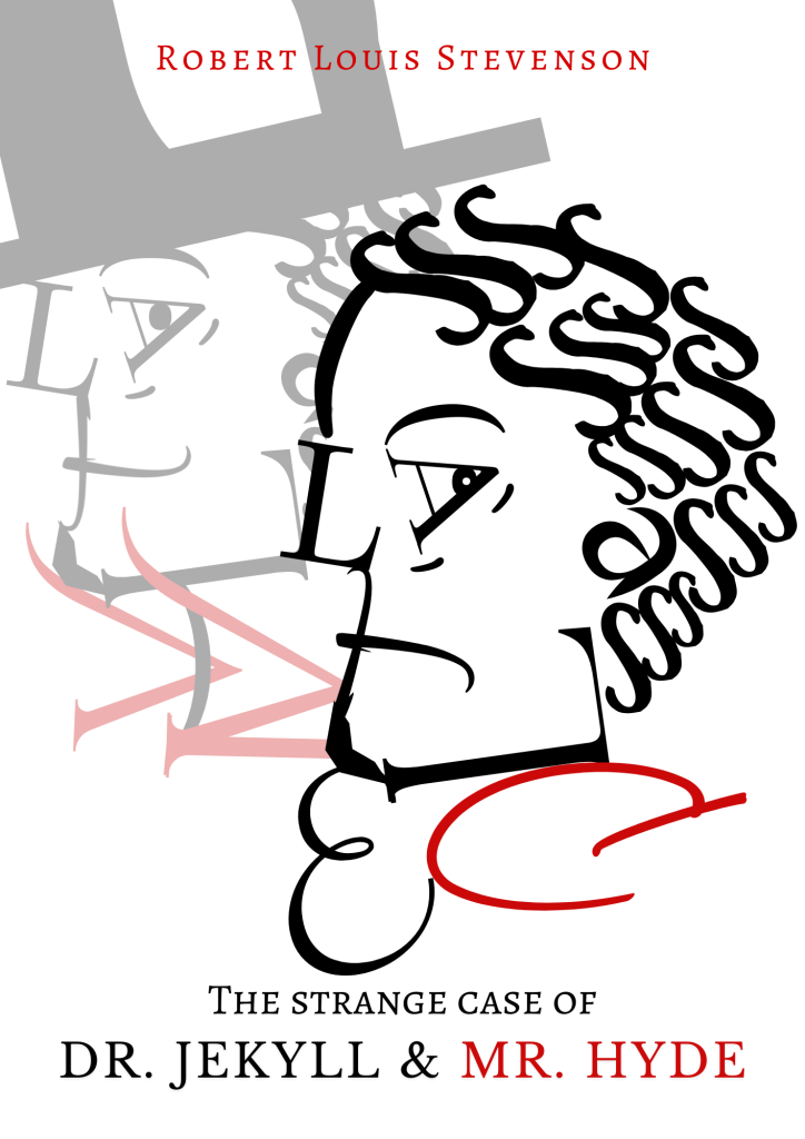 Book cover of The Strange Case of Dr. Jekyll and Mr. Hyde by Robert Louis Stevenson, made with letters